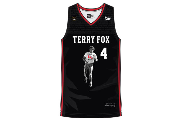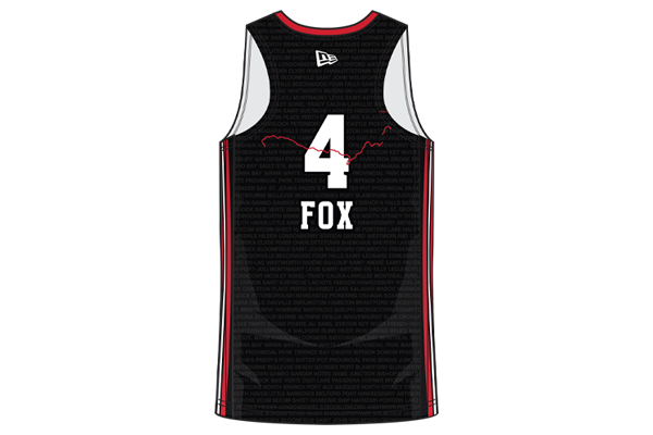Fox’s running route spanning Newfoundland, Prince Edward Island, Nova Scotia, New Brunswick, Quebec and Ontario is etched on the jersey, which also features his name and the no. 4 on the back of all replica jerseys available for fans to purchase.